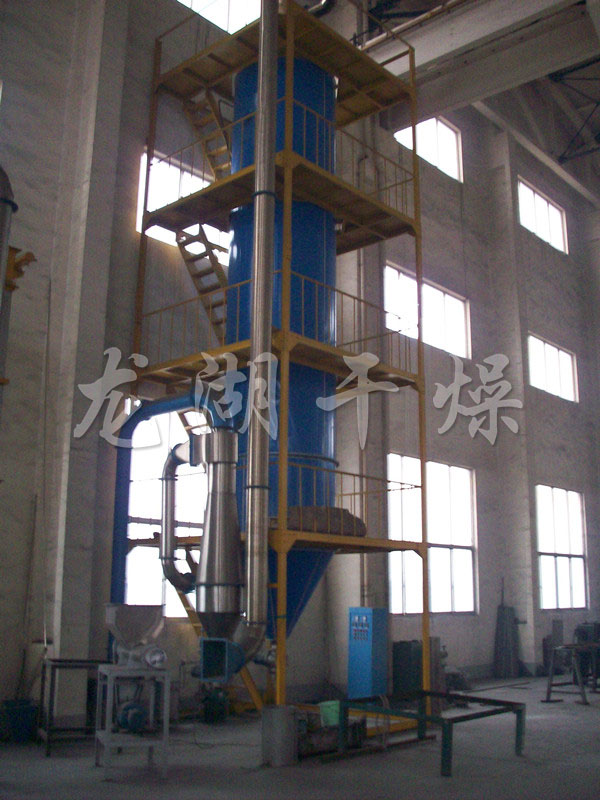 The working process of this unit is that the feed liquid passes through the high pressure input of the diaphragm pump, sprays droplets of mist, and then flows down in parallel with the hot air. Most of the particles are collected from the bottom outlet of the tower, and the exhaust gas and its tiny powder are separated by cyclones. The device is separated and the exhaust gas is discharged by an exhaust fan. The powder is collected by a pollination cylinder located at the lower end of the cyclone separator. The fan outlet can also be equipped with a secondary dust removal device with a recovery rate of 96-98%.